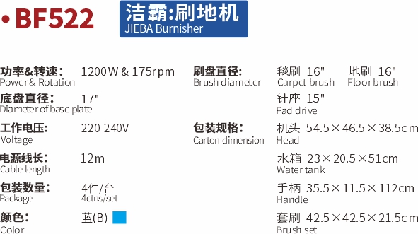 -具有洗地、洗地毯、起蠟、低速拋光等四大功能,能同時(shí)滿(mǎn)足顧客的多種清潔需要。